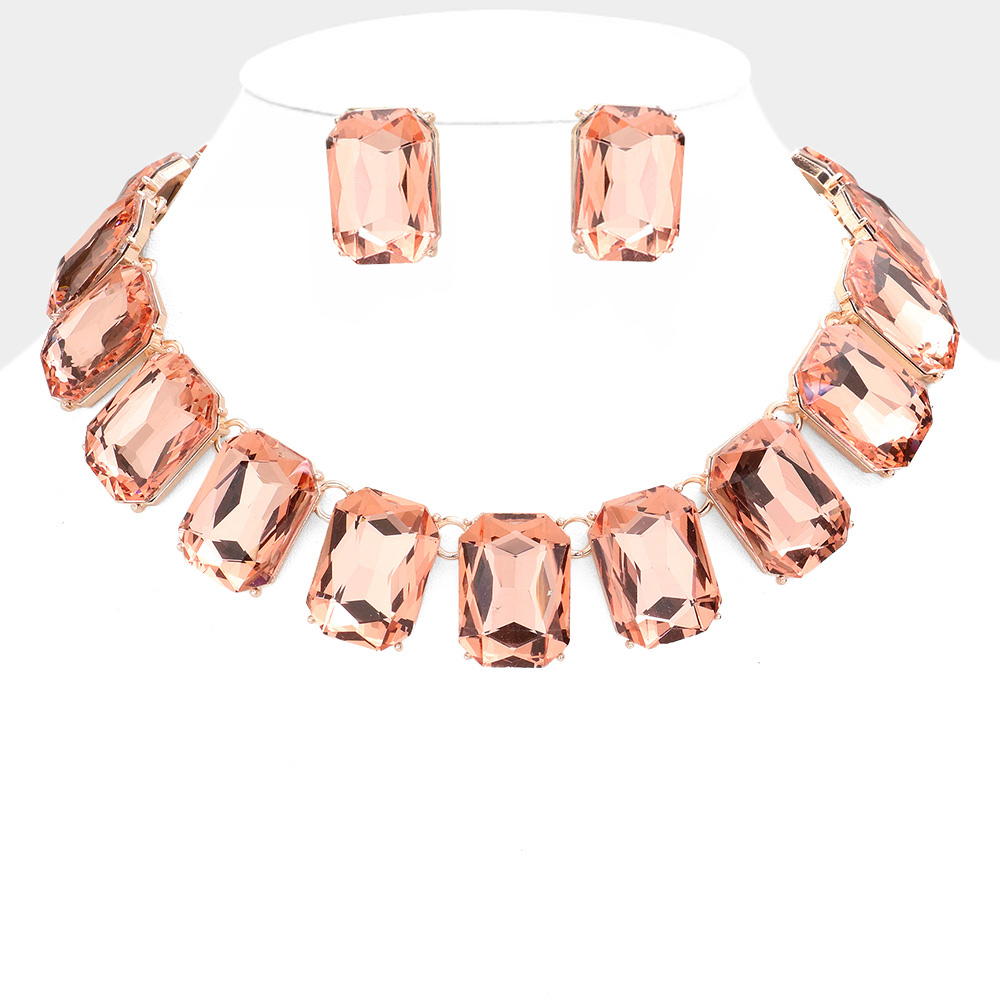 Emerald Cut Stone Link Evening Necklace