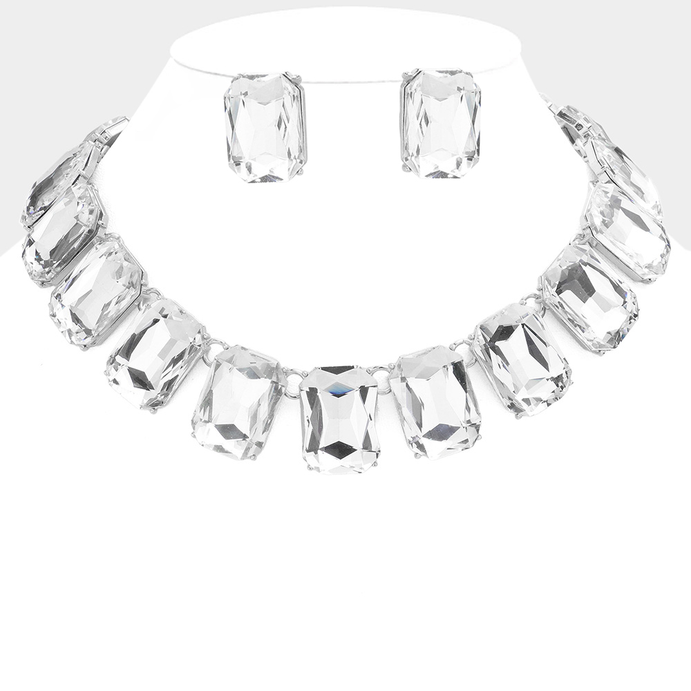 CZ Heart Stone Cluster Accent Rhinestone Paved Necklace