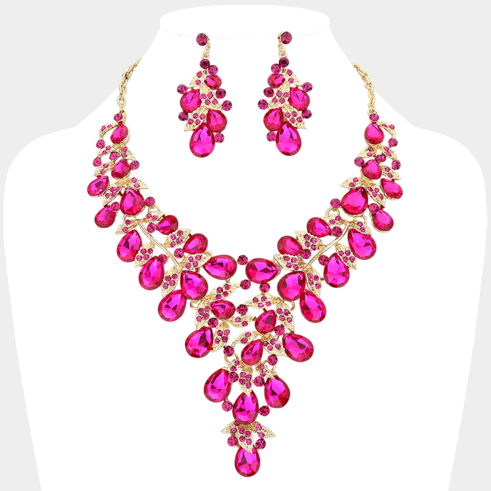 Leaf Teardrop Stone Cluster Statement Evening Necklace