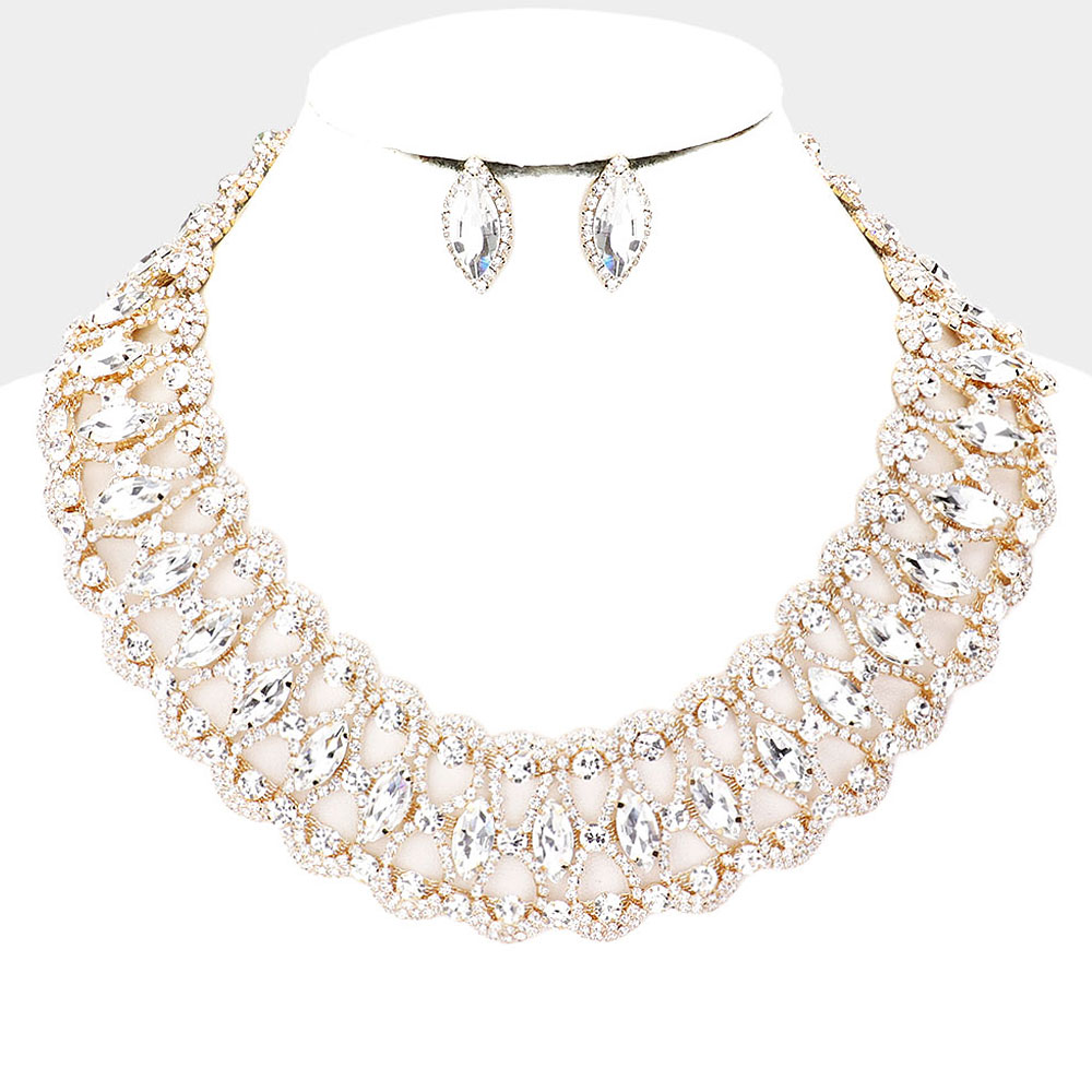 Marquise Stone Accented Collar Evening Necklace