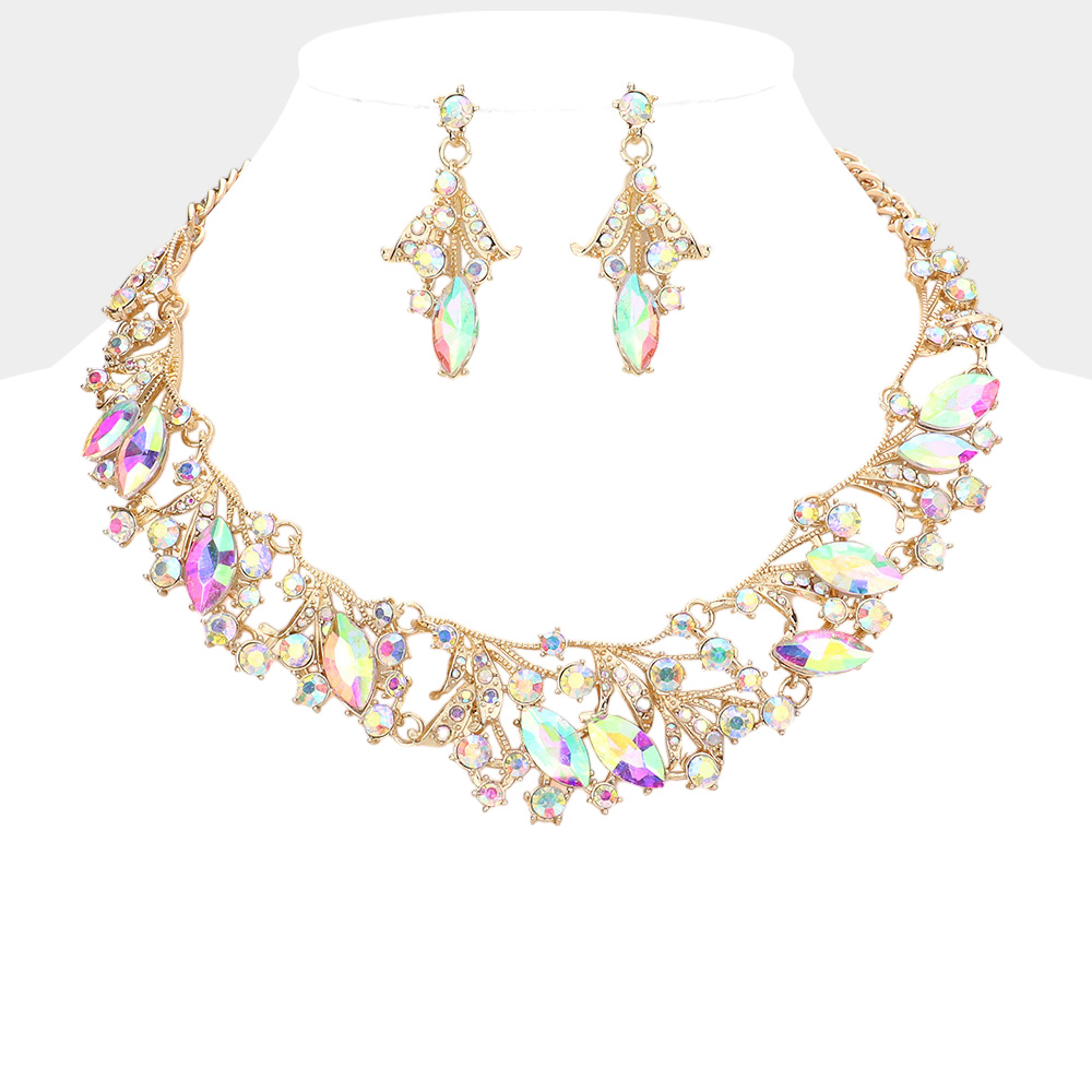 Floral Stone Teardrop Cluster Drop Evening Earrings