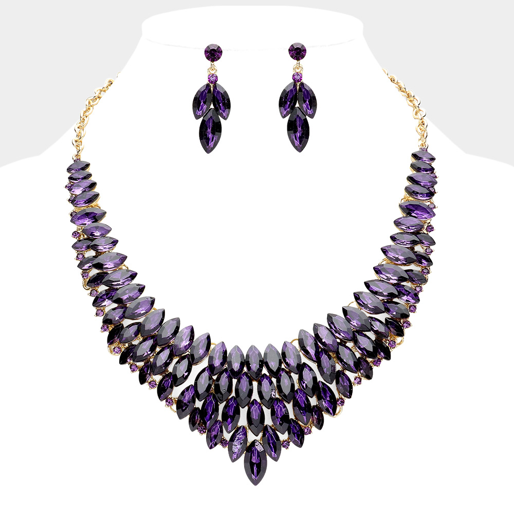 Marquise Stone Cluster Embellished Collar Evening Necklace