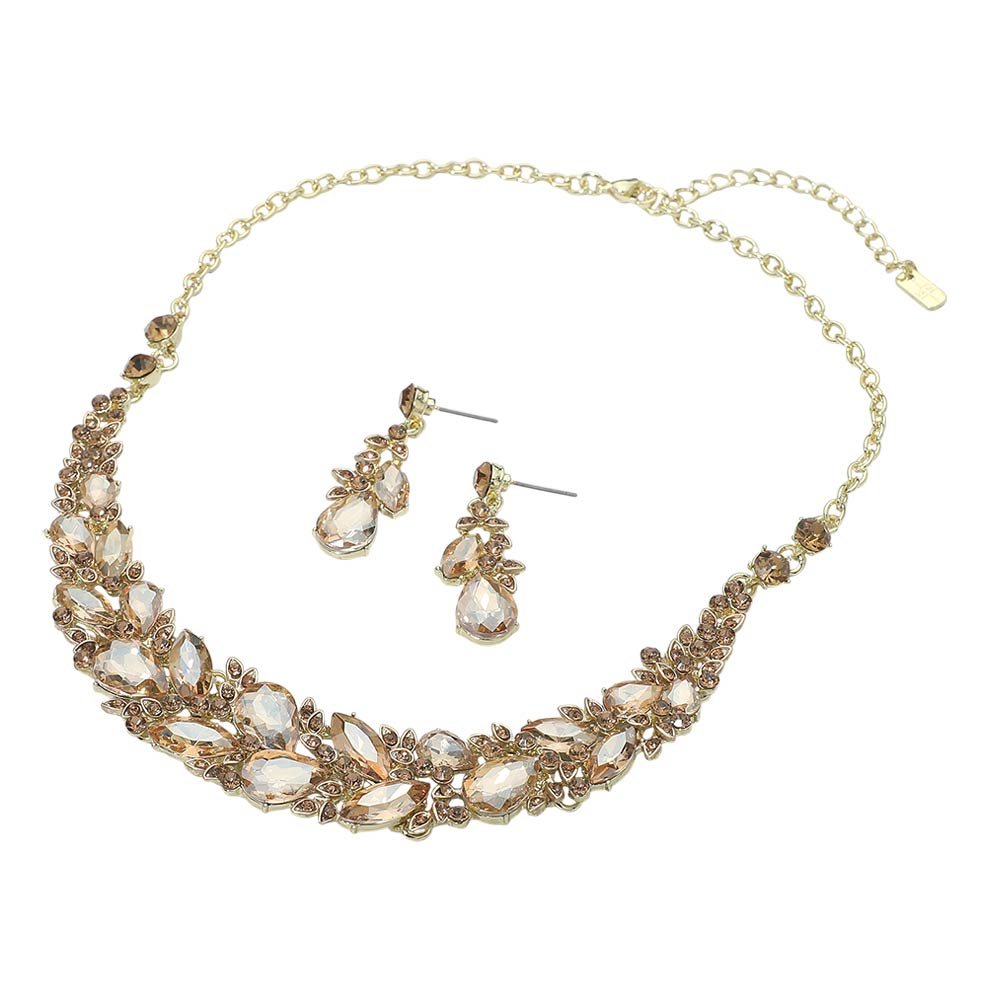 • Elegant statement necklace and matching earring set designed to elevate formal and evening looks. Featuring layered crystal accents and a graceful silhouette, this coordinated set adds dramatic sparkle and refined style, making it ideal for special occasions, events, or standout gifting.