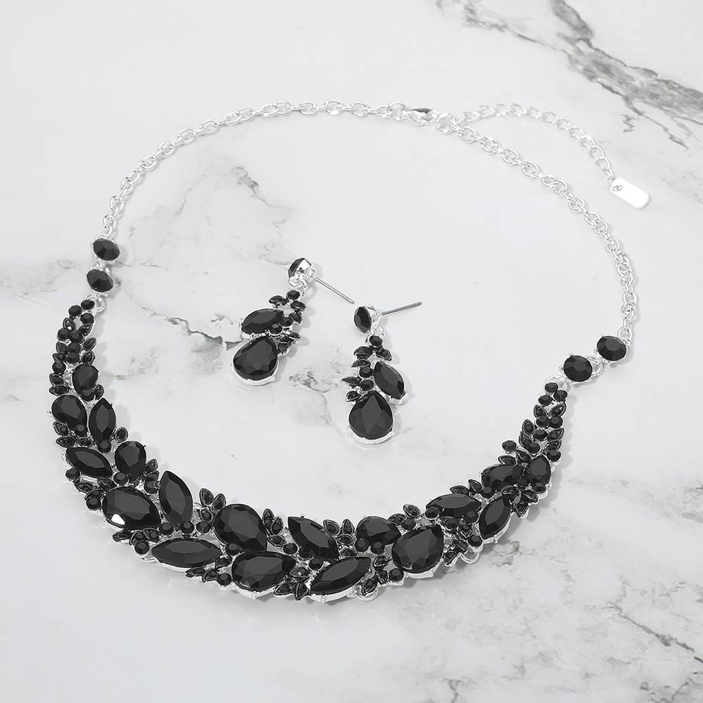 • Elegant statement necklace and matching earring set designed to elevate formal and evening looks. Featuring layered crystal accents and a graceful silhouette, this coordinated set adds dramatic sparkle and refined style, making it ideal for special occasions, events, or standout gifting.
