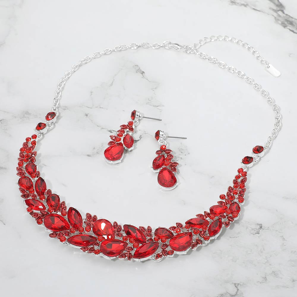 • Elegant statement necklace and matching earring set designed to elevate formal and evening looks. Featuring layered crystal accents and a graceful silhouette, this coordinated set adds dramatic sparkle and refined style, making it ideal for special occasions, events, or standout gifting.