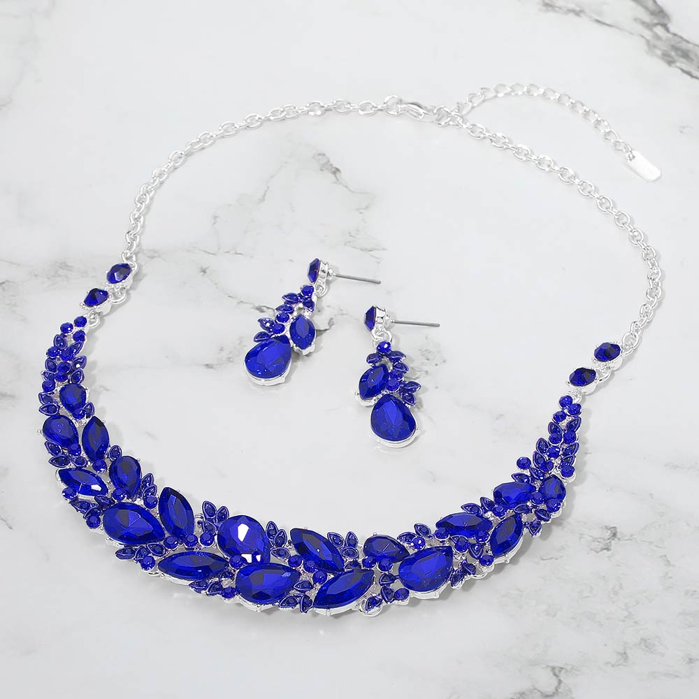 • Elegant statement necklace and matching earring set designed to elevate formal and evening looks. Featuring layered crystal accents and a graceful silhouette, this coordinated set adds dramatic sparkle and refined style, making it ideal for special occasions, events, or standout gifting.
