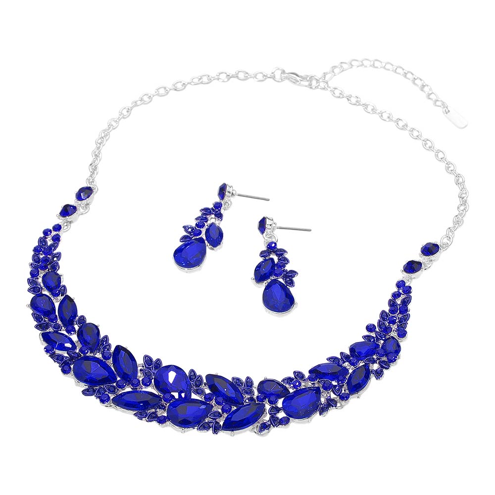 Marquise Stone Cluster Embellished Evening Necklace