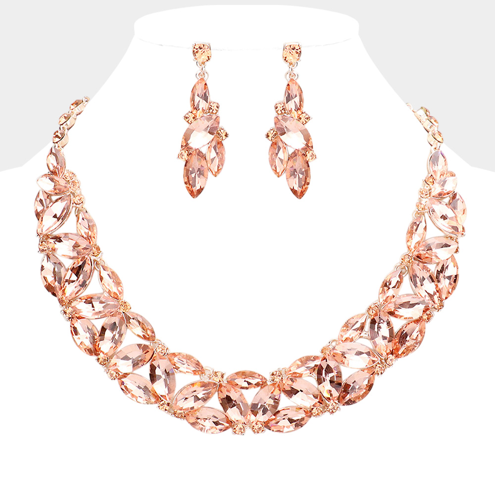 Marquise Stone Cluster Embellished Collar Evening Necklace