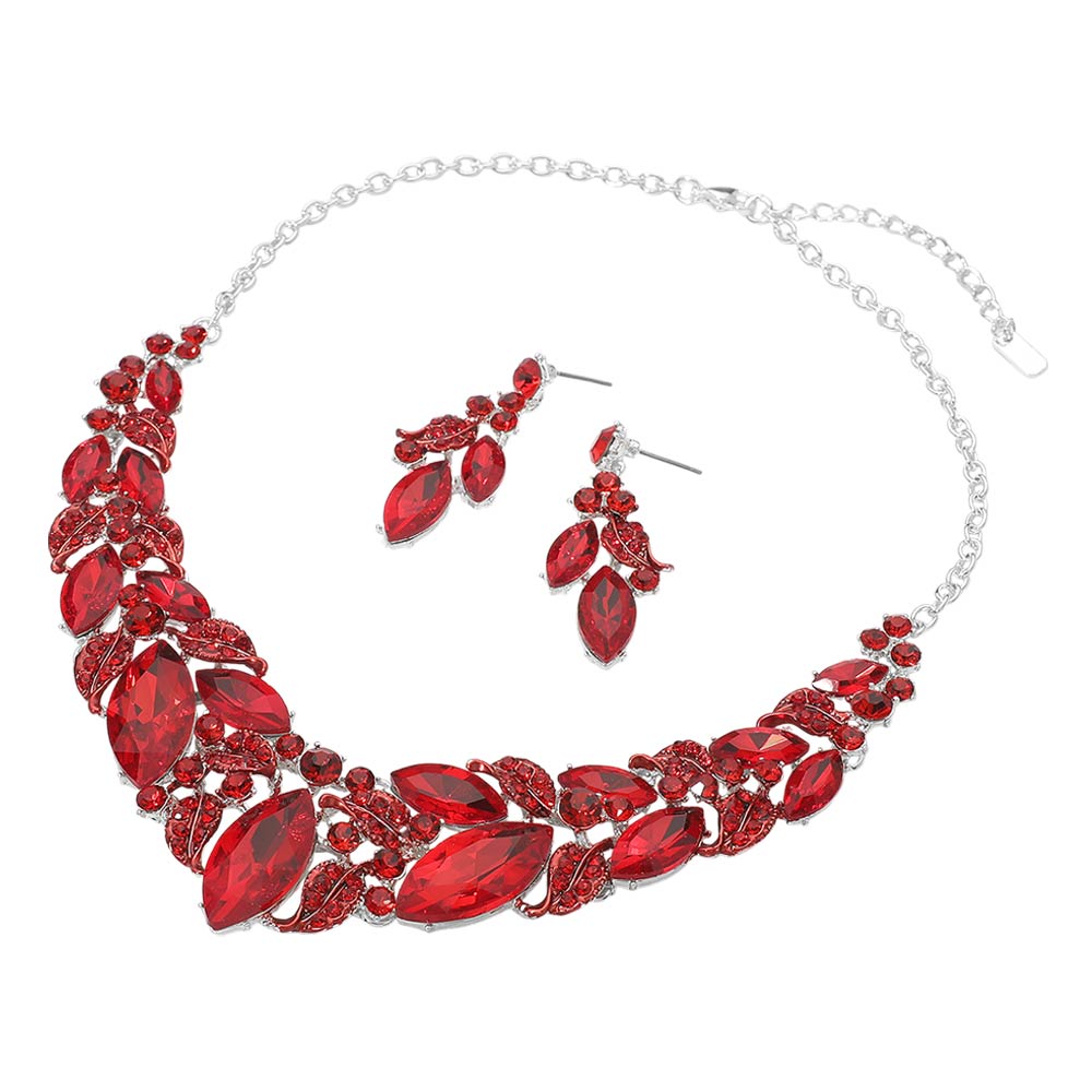 • Bold statement necklace and matching earring set designed to create a striking, elegant look. Featuring layered crystal accents arranged in a dramatic silhouette, this coordinated set enhances evening outfits, formal styling, and special occasion wear while delivering eye-catching sparkle and refined impact.