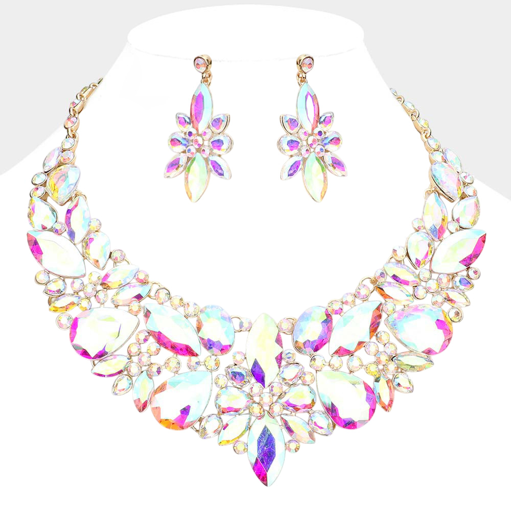 Rhinestone Trim Oval Stone Stud Evening Earrings