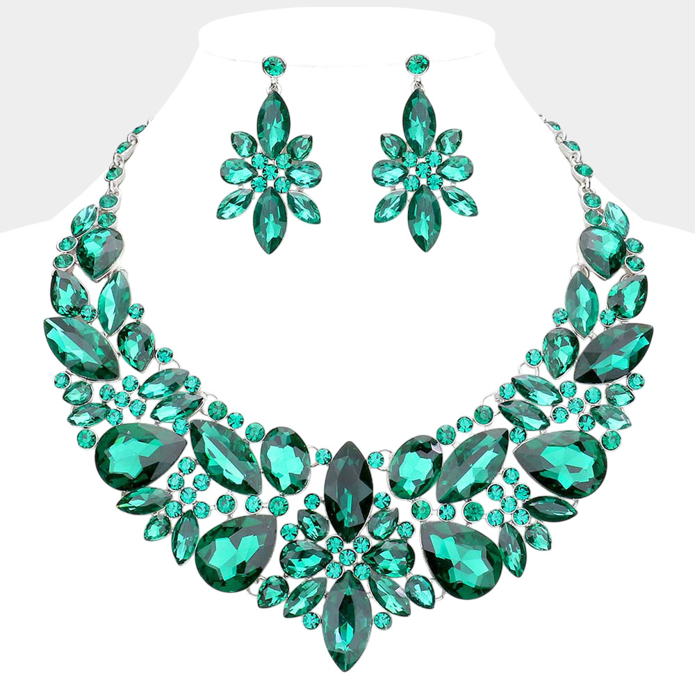 • Dazzle in timeless elegance with this rhinestone statement necklace and earring set. Featuring bold clustered crystals in a floral-inspired design, this matching set is perfect for weddings, galas, and special occasions. The adjustable necklace ensures a comfortable fit, while the lightweight earrings add just the right amount of sparkle. A must-have for bridal looks, evening wear, or anyone wanting to make a glamorous entrance.