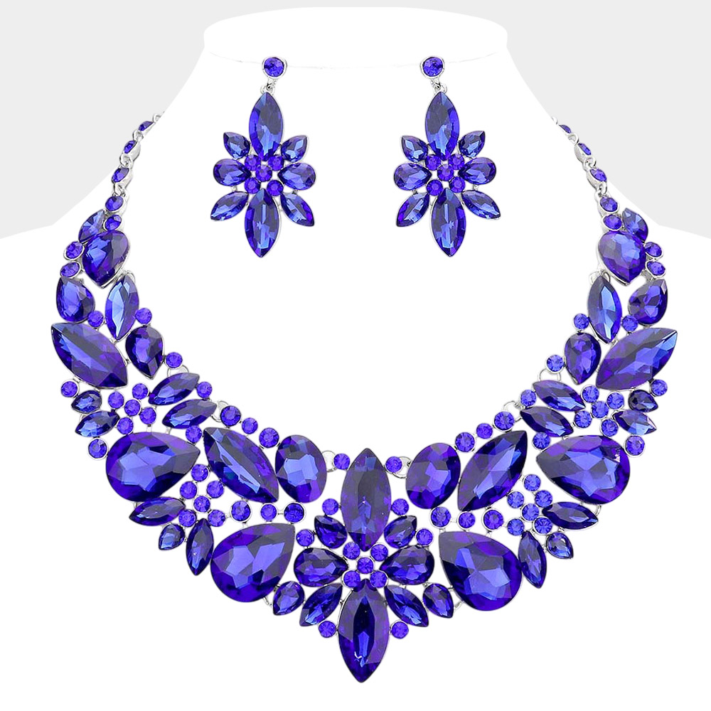 • Dazzle in timeless elegance with this rhinestone statement necklace and earring set. Featuring bold clustered crystals in a floral-inspired design, this matching set is perfect for weddings, galas, and special occasions. The adjustable necklace ensures a comfortable fit, while the lightweight earrings add just the right amount of sparkle. A must-have for bridal looks, evening wear, or anyone wanting to make a glamorous entrance.