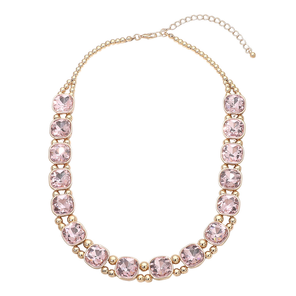• Elegant linked necklace featuring evenly spaced square-cut stones framed by polished metal accents. Designed with an adjustable chain for versatile styling, this piece adds refined sparkle to everyday looks, special occasions, and layered jewelry collections, making it a timeless addition for retail displays and gifting.
