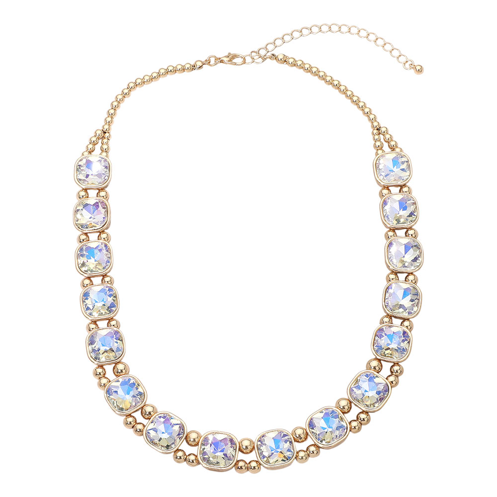 Details • Necklace Size : 18" + 3.5" L • Decor Size : 0.5" L • Elegant linked necklace featuring evenly spaced square-cut stones framed by polished metal accents. Designed with an adjustable chain for versatile styling, this piece adds refined sparkle to everyday looks, special occasions, and layered jewelry collections, making it a timeless addition for retail displays and gifting. • Lead and Nickel Compliant