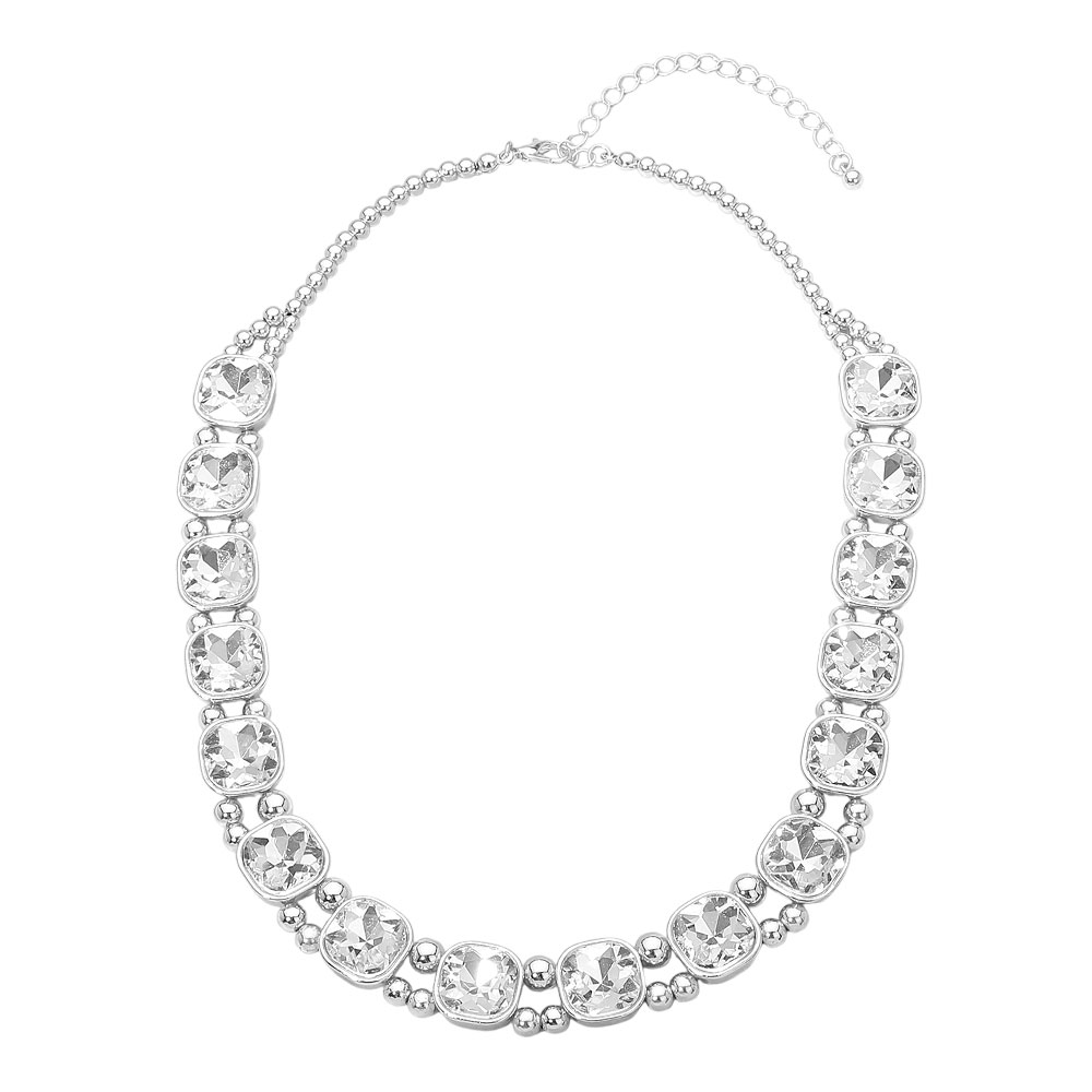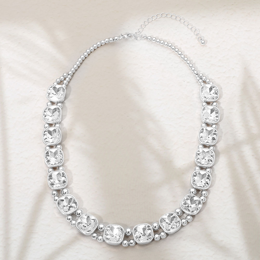 Square Faceted Stone Bezel Link Evening Necklace Square Faceted Stone Bezel Link Evening Necklace Square Faceted Stone Bezel Link Evening Necklace