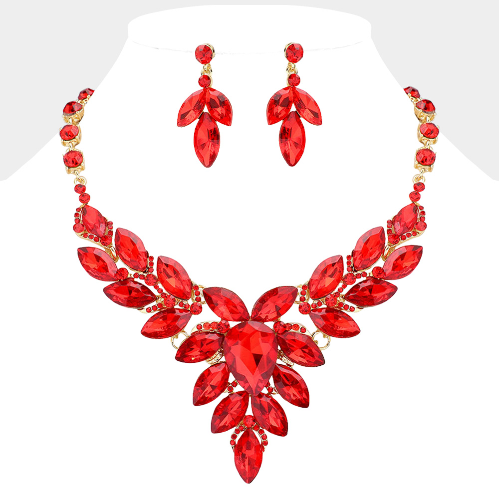 Teardrop Center Marquise Stone Cluster Evening Necklace