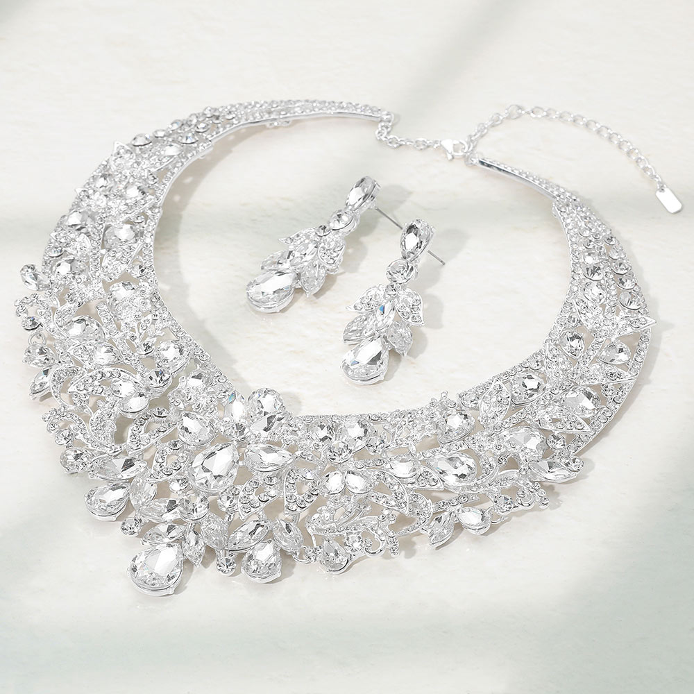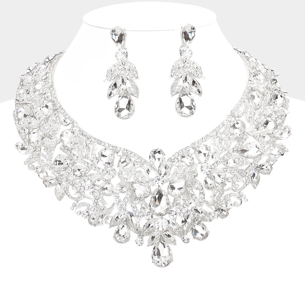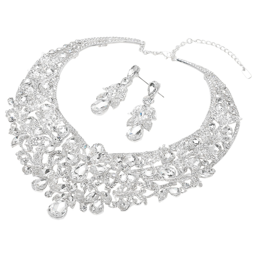 Teardrop Stone Accented Leaf Evening Necklace Teardrop Stone Accented Leaf Evening Necklace Teardrop Stone Accented Leaf Evening Necklace
