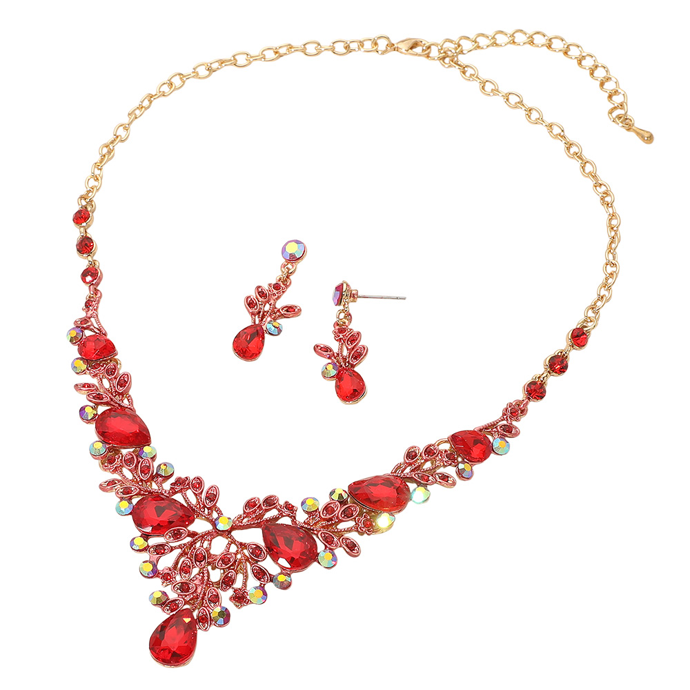 Teardrop Stone Cluster Embellished Branch Evening Necklace