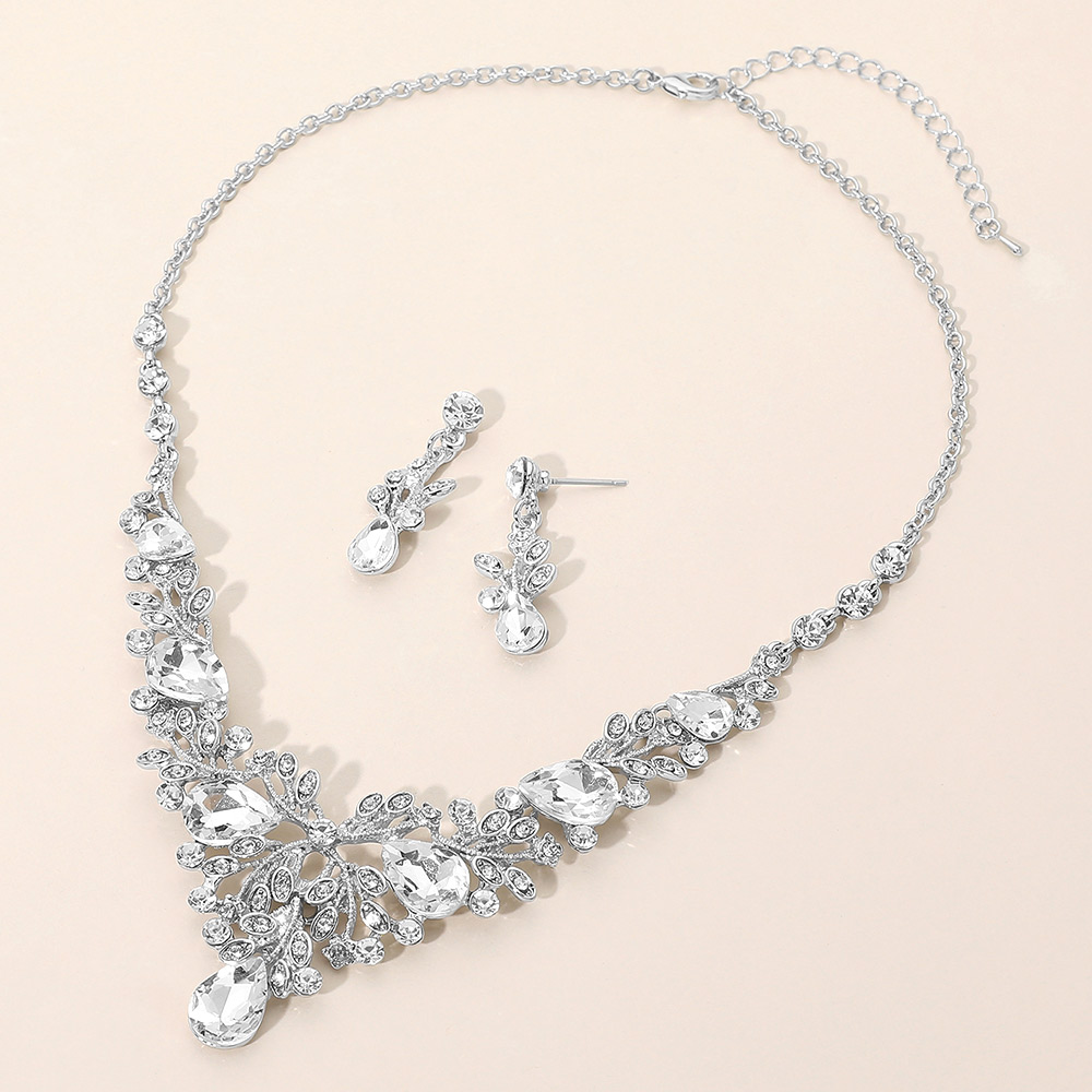 Teardrop Stone Cluster Embellished Branch Evening Necklace Teardrop Stone Cluster Embellished Branch Evening Necklace