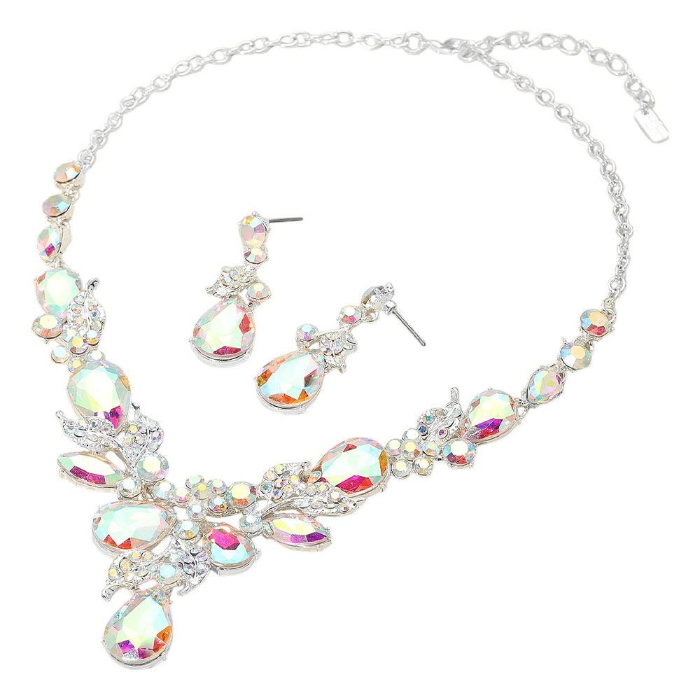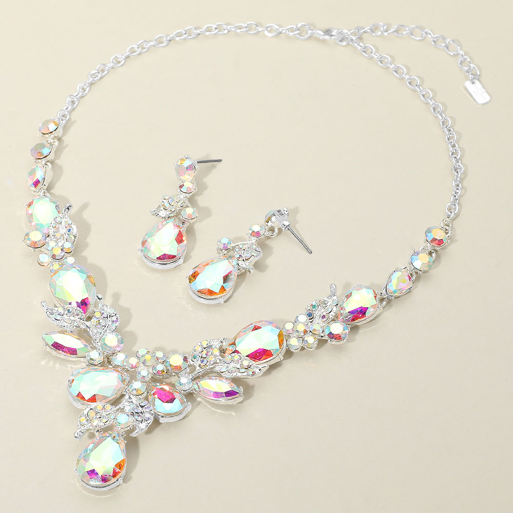 Crystal Rhinestone Trim Teardrop Collar Evening Necklace