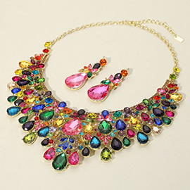• Elevate your evening style with this bold teardrop necklace and earring set. Featuring an intricate array of faceted stones that shimmer with sophistication, this statement jewelry duo adds instant drama and elegance to any special occasion or formal ensemble.