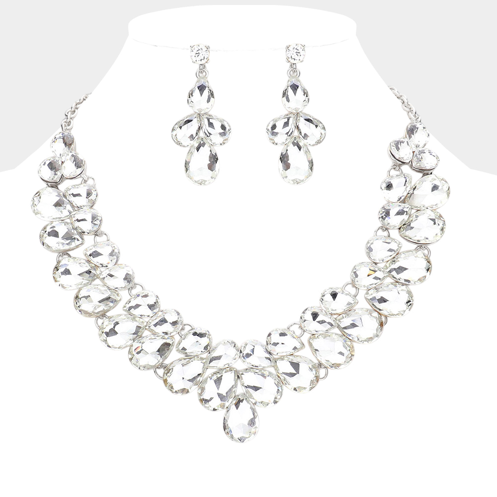 Teardrop Stone Cluster Accent Rhinestone Paved Floral Embellished Collar Statement Evening Necklace