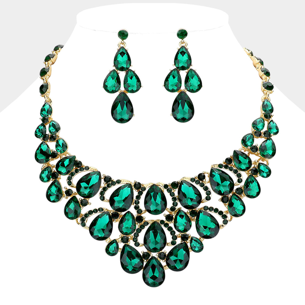 Teardrop Stone Cluster Evening Necklace