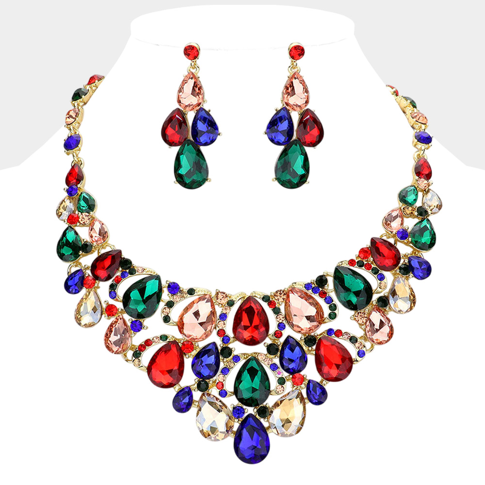 Teardrop Pearl Embellished Rhinestone Paved Necklace