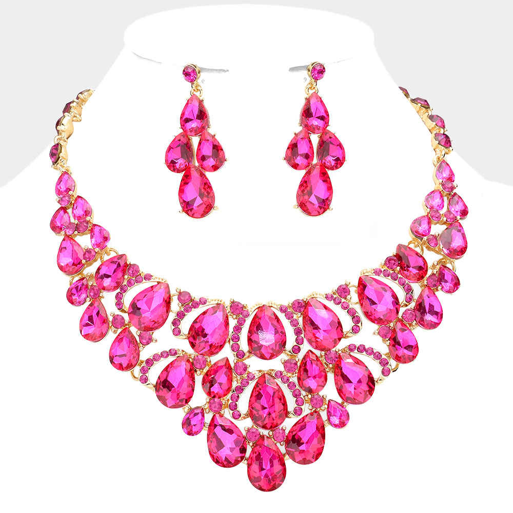 Teardrop Stone Cluster Evening Necklace