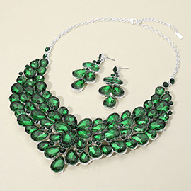 Teardrop Stone Cluster Statement Evening Necklace Teardrop Stone Cluster Statement Evening Necklace