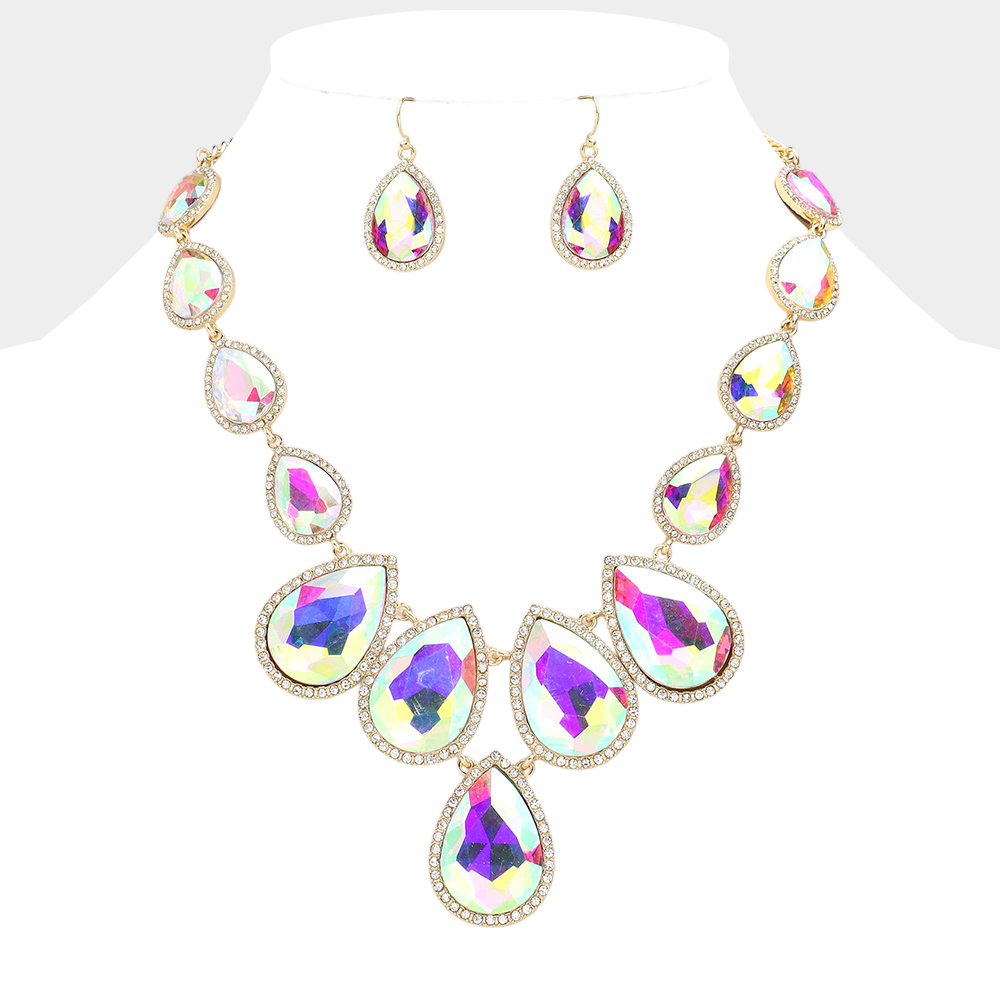 Oversized Glass Stone Cluster Dangle Evening Earrings