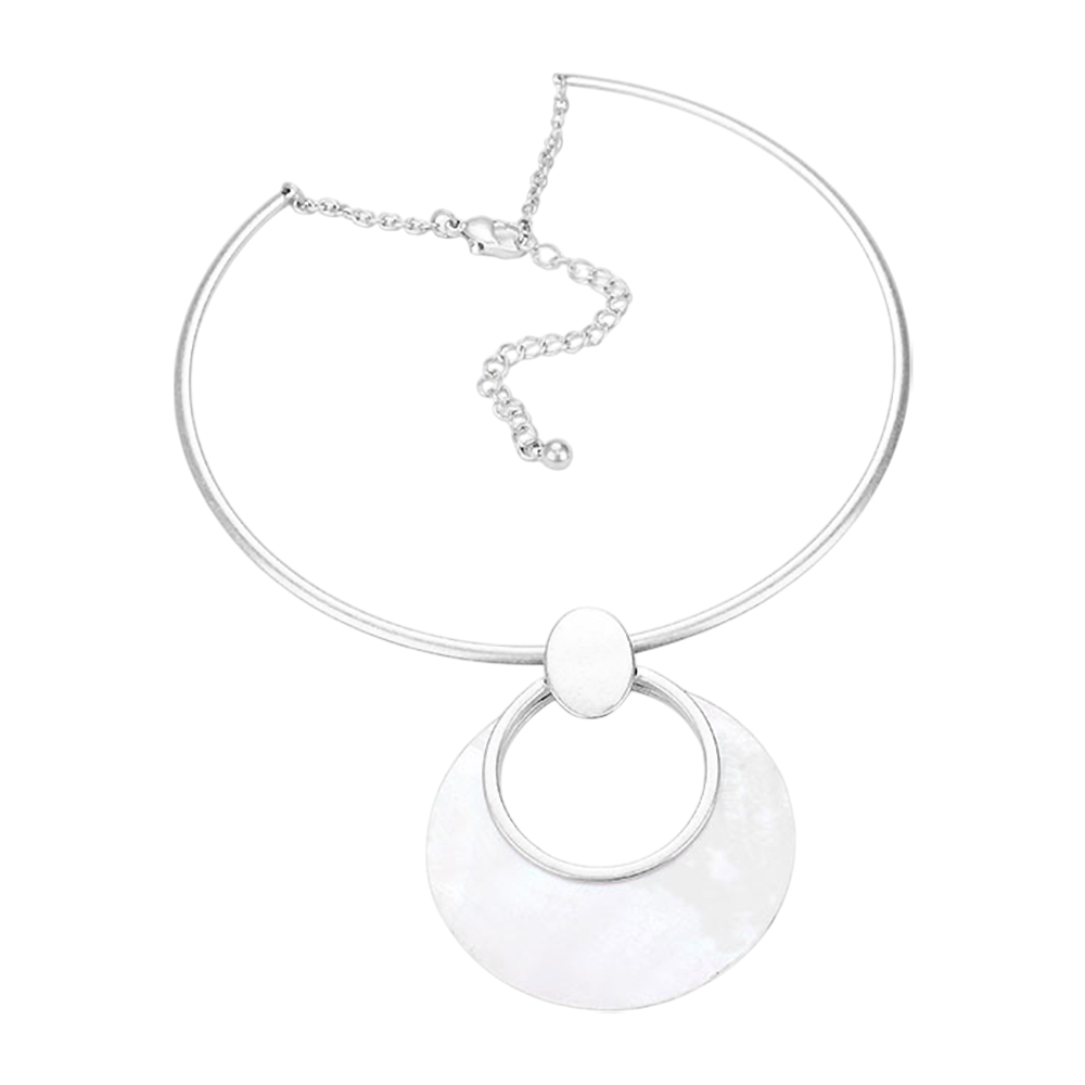 Hollow Round Mother of Pearl Metal Choker Necklace