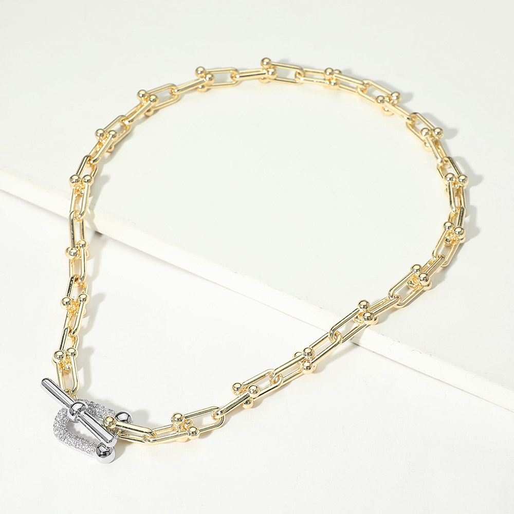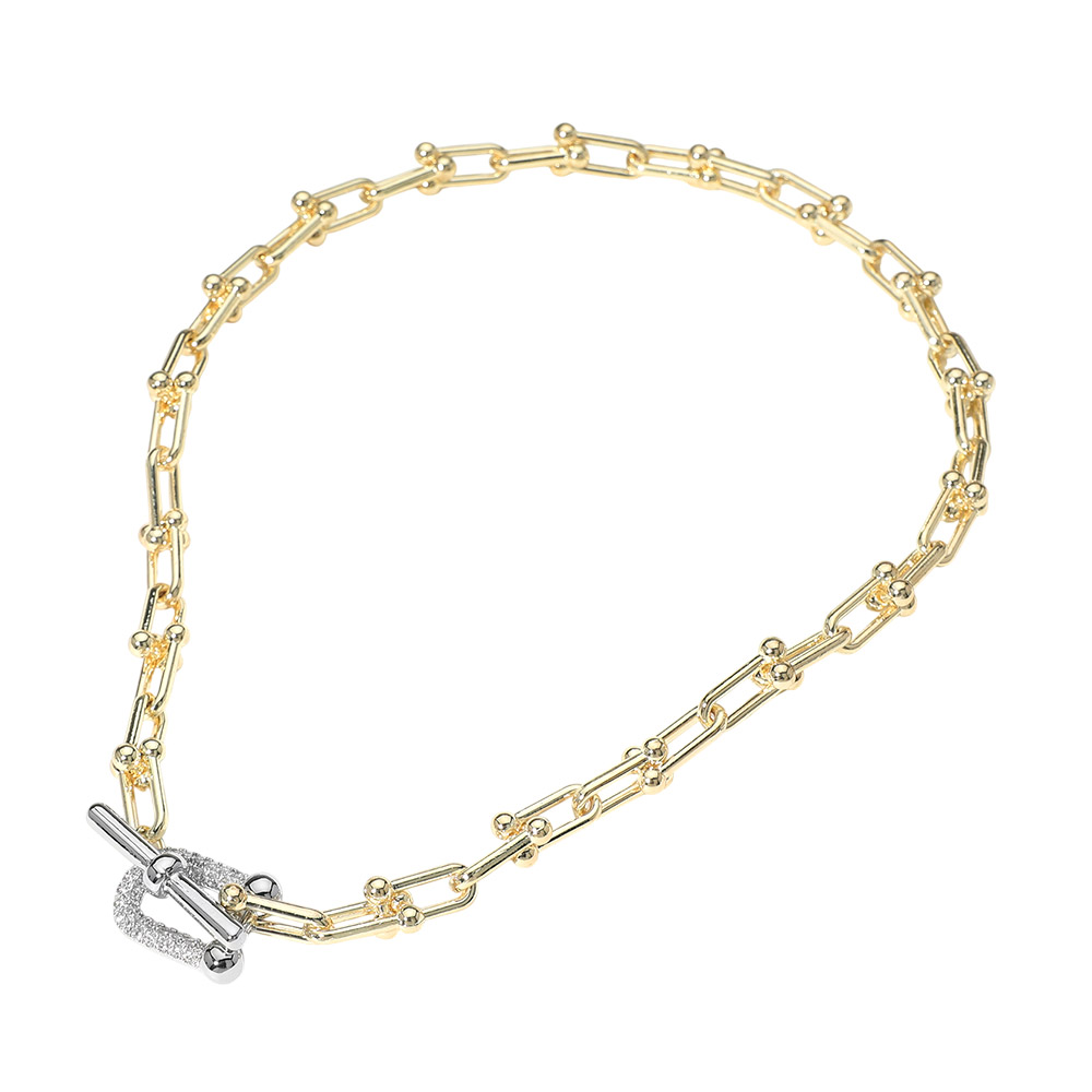 Details • Necklace Size : 17" L • Decor Size : 0.25" L • Toggle Closure • This beaded link toggle chain necklace features elongated links accented with subtle bead details and a refined front toggle closure. Designed for versatile styling, it elevates everyday looks and layered jewelry edits, making it a strong statement piece for modern wardrobes and curated boutique collections. • CZ Cubic Zirconia • Gold Dipped