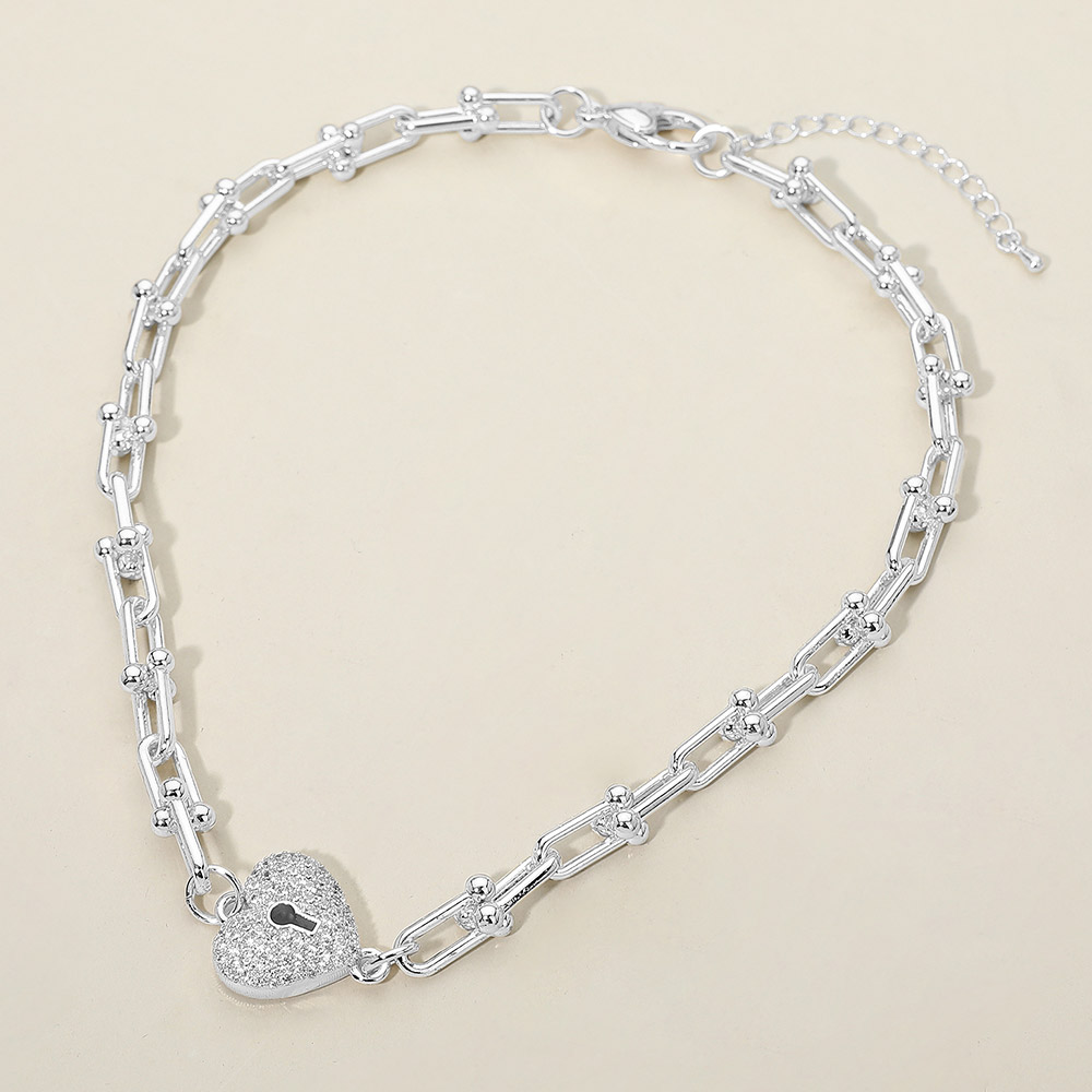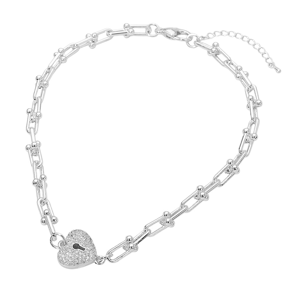 • This stylish chain necklace features a heart lock charm with sparkling CZ accents, creating a bold yet elegant statement. Designed for everyday wear or special occasions, it adds a modern romantic touch and pairs easily with both casual and elevated looks.