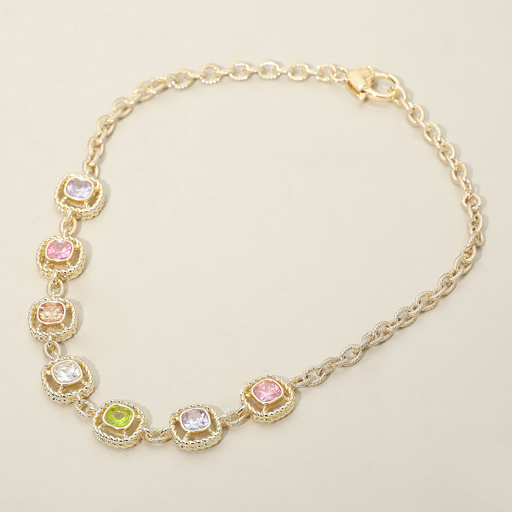 14K Gold Plated Multi Color Square CZ Stone Cushion Link Necklace 14K Gold Plated Multi Color Square CZ Stone Cushion Link Necklace 14K Gold Plated Multi Color Square CZ Stone Cushion Link Necklace