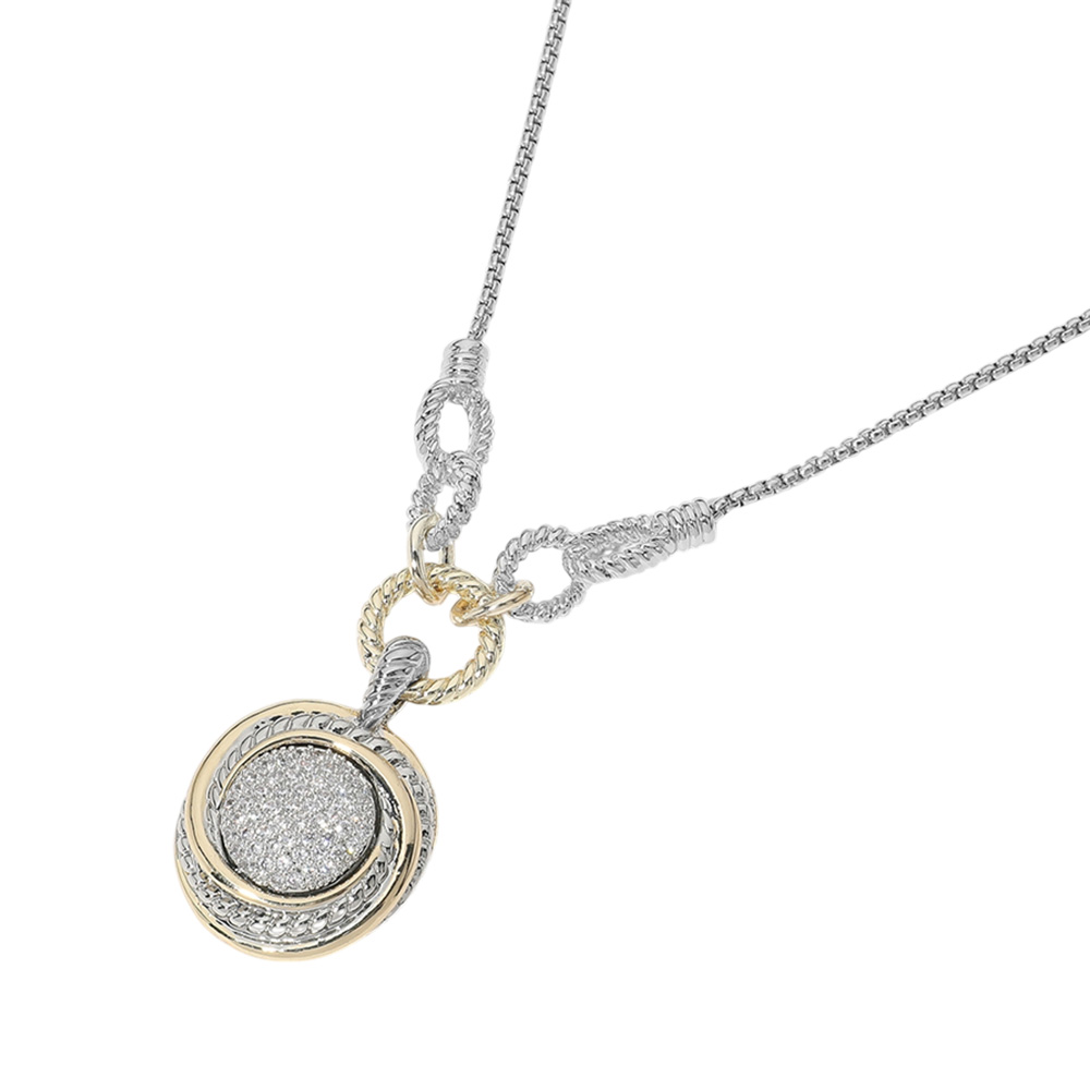 14K Gold Plated Two Tone CZ Stone Paved Disc Pendant Necklace