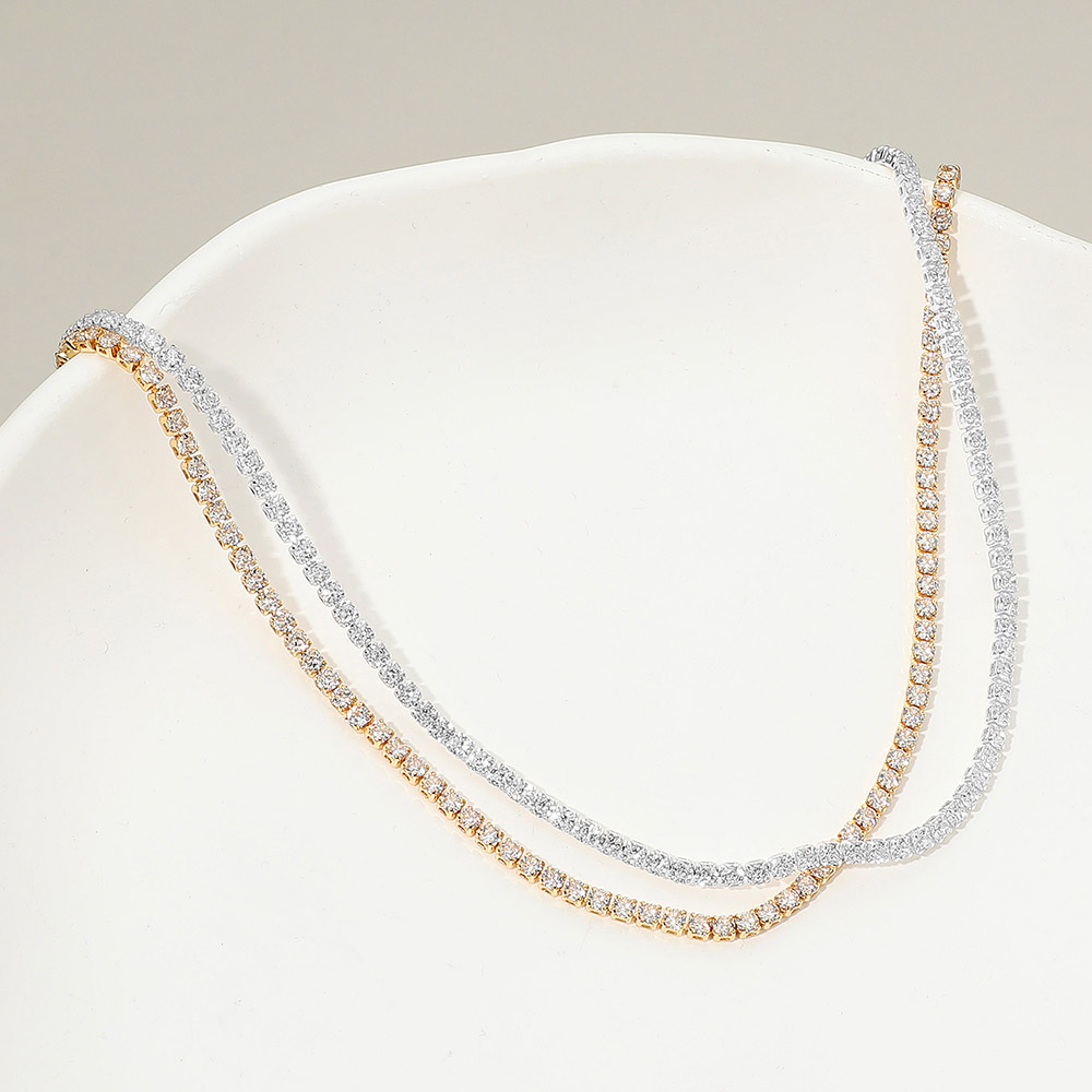 Details • Necklace Size : 16" + 3" L • Decor Size : 0.1" L • Refined tennis chain necklace featuring a row of sparkling crystal accents for a timeless and luxurious look. Perfect for layering or wearing solo, it enhances any outfit with subtle sophistication. Ideal for special occasions or daily elegance in any jewelry collection. • Gold Dipped • Lead and Nickel Compliant