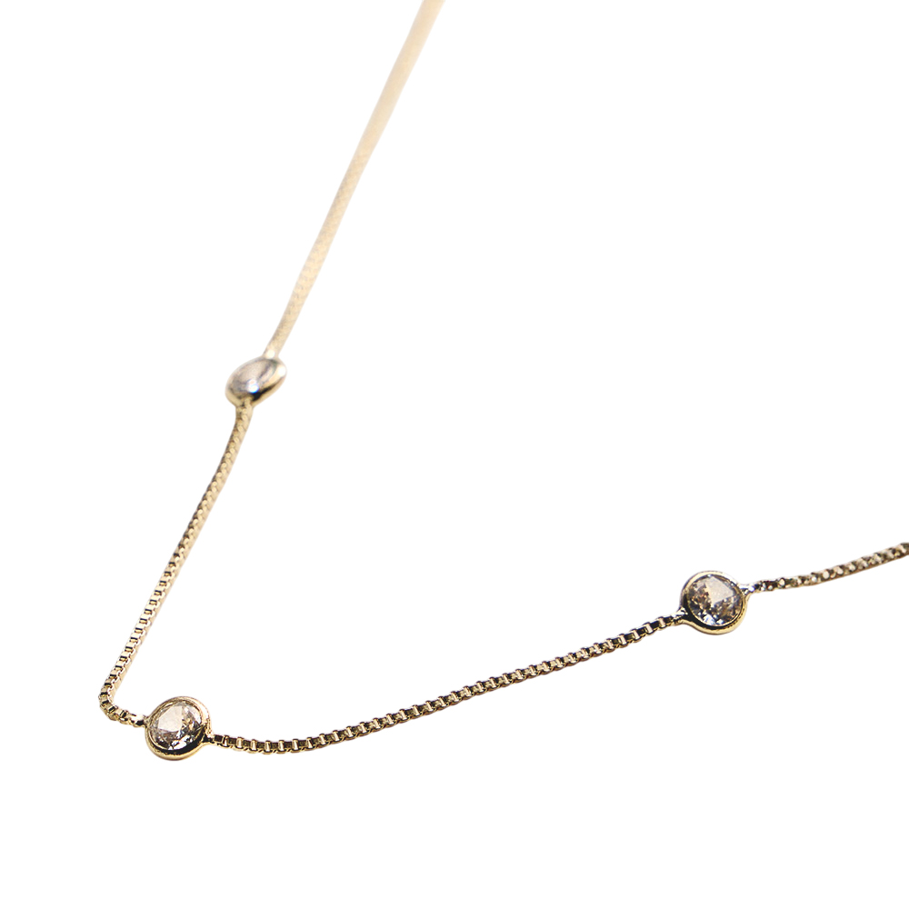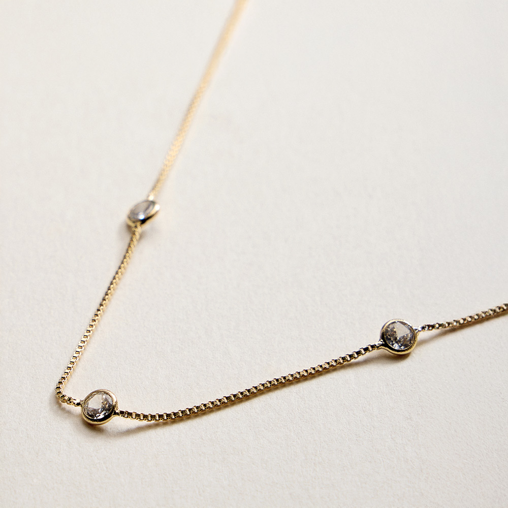 Details • Necklace Size : 14.25" + 4" L • Decor Size : 0.25" L • This station accent chain necklace showcases evenly spaced focal details along a sleek chain for a refined, balanced look. Designed for effortless layering or elegant solo wear, it adds subtle shine and movement, making it a versatile choice for everyday styling, gifting, and curated boutique collections. • CZ Cubic Zirconia • Gold Filled • Hypoallergenic • Lead and Nickel Compliant • Made In Brazil