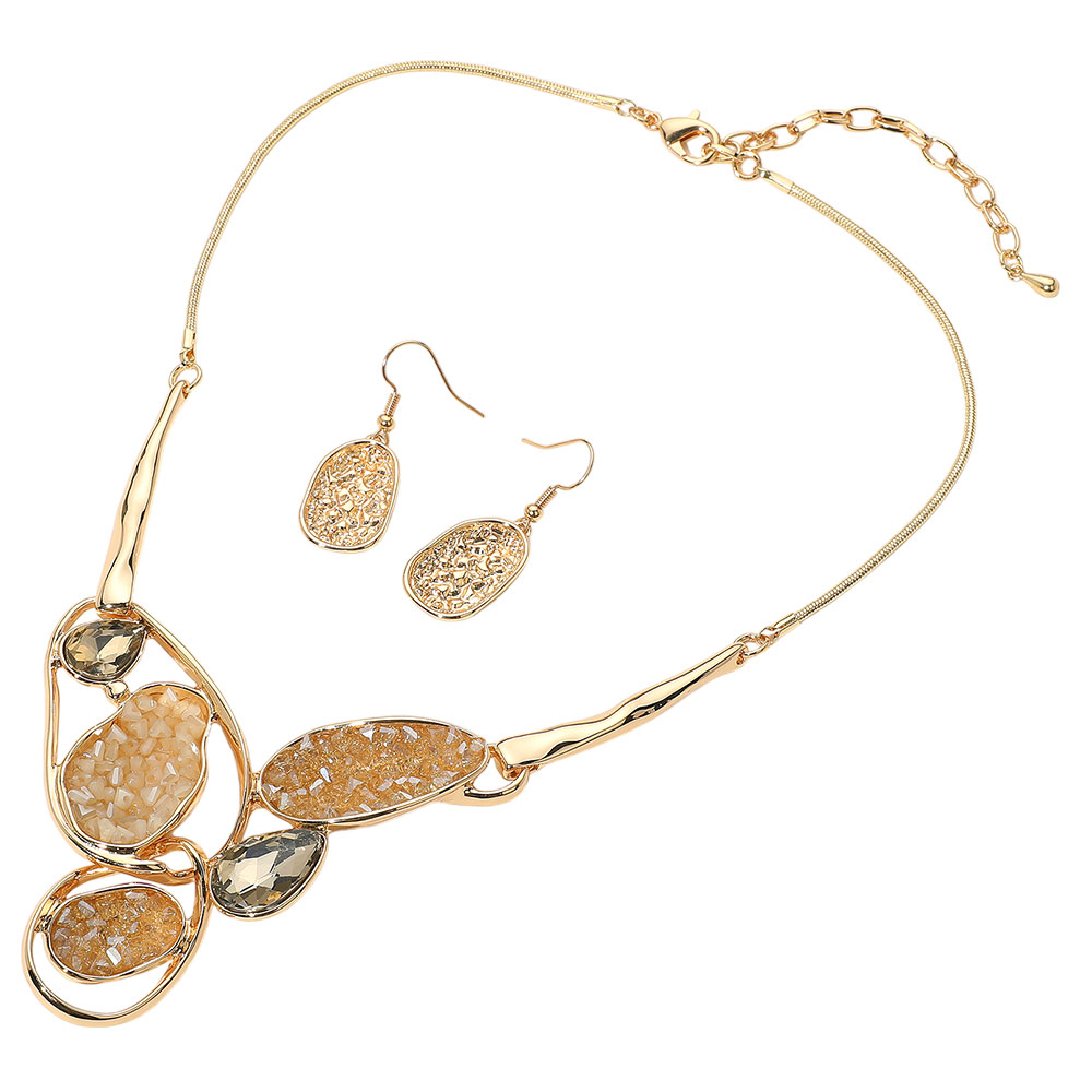 Geometric Stone Accent Printed Resin Plate Drop Earrings