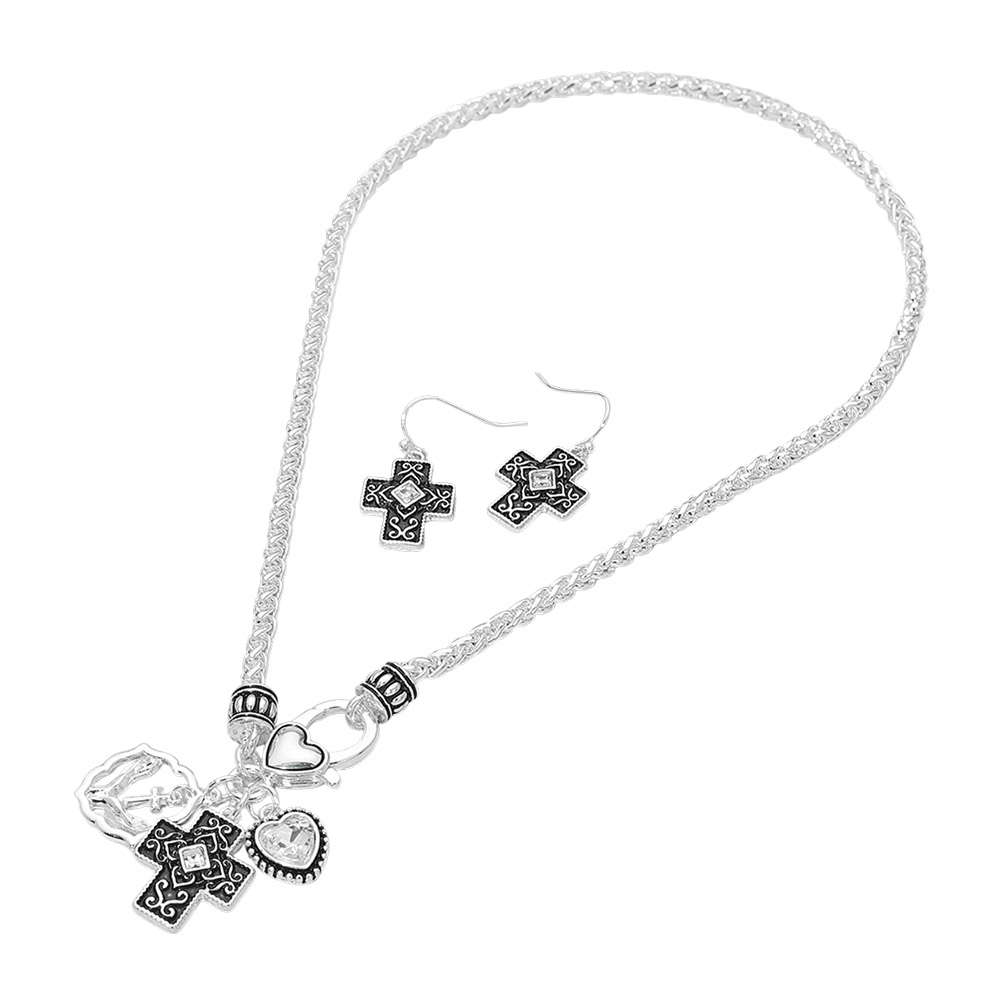 • This cross charm necklace and matching earring set features faith-inspired accents with a coordinated pendant and drop earrings. Designed for everyday wear or special occasions, it offers meaningful style for church events, religious celebrations, gifting, or personal expression with a timeless and versatile look.