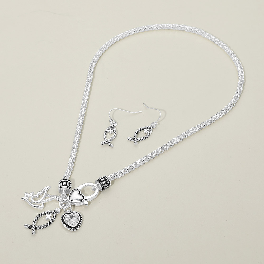 Details • Necklace Size : 17" L • Decor Size : 1" L • Earrings Size : 1.2" L • This fish charm necklace and matching earring set features symbolic faith-inspired accents with a coordinated pendant and drop earrings. Designed for meaningful everyday wear, church gatherings, and religious celebrations, this versatile set makes a thoughtful gift or a timeless expression of personal belief and style. • Lead and Nickel Compliant