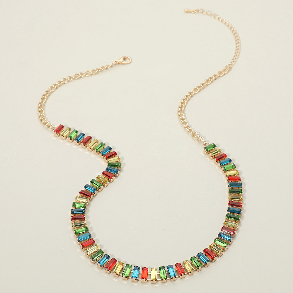 • This statement necklace features a sleek row of baguette style accents arranged along a classic chain for a refined yet eye catching look. Designed to elevate everyday outfits or complete evening styling, it offers a balanced blend of structure and shine. Ideal for layered looks, gift selections, and curated accessory assortments.