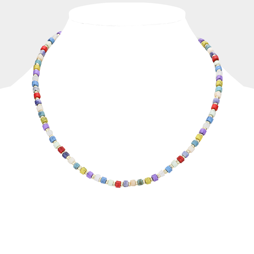Teardrop Pearl Embellished Square Rhinestone Paved Necklace
