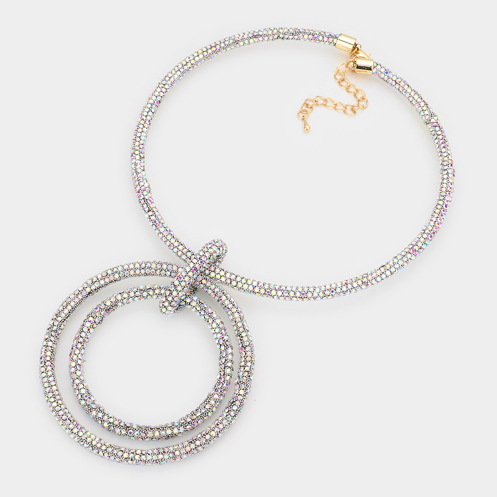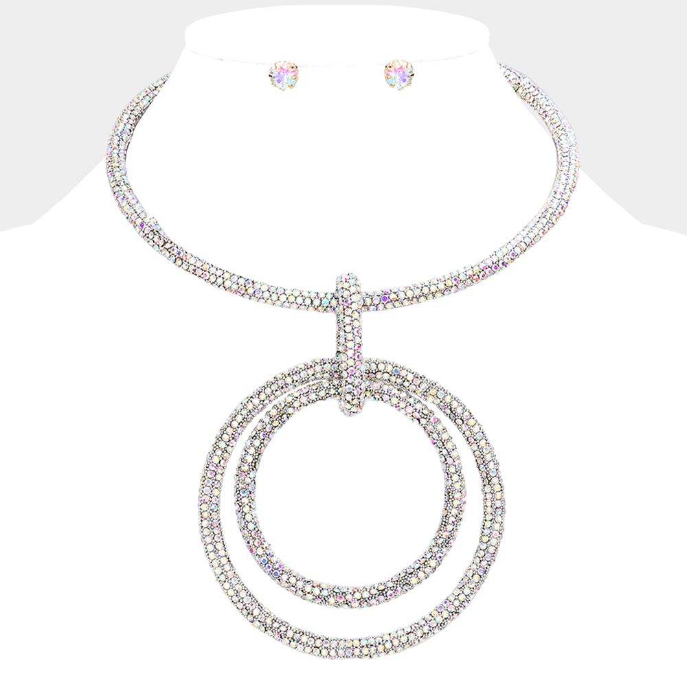 Bling Double Open Circle Pendant Necklace