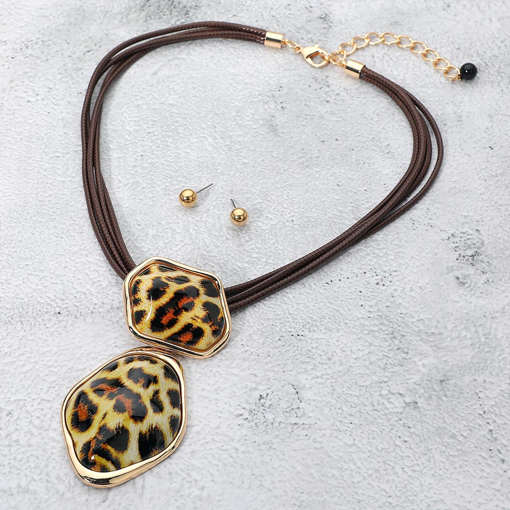 • Bold pendant necklace paired with coordinating stud earrings for a complete look. The unique layered design adds eye-catching detail, making this set perfect for elevating casual outfits or complementing evening attire with effortless elegance.