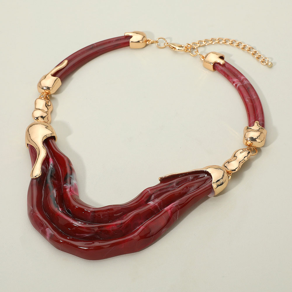 • Dramatic statement necklace featuring sculpted wave-like elements with a glossy finish and metallic accents. A striking accessory that blends artistic style with modern elegance, perfect for making an impression at parties, events, or elevating everyday outfits.