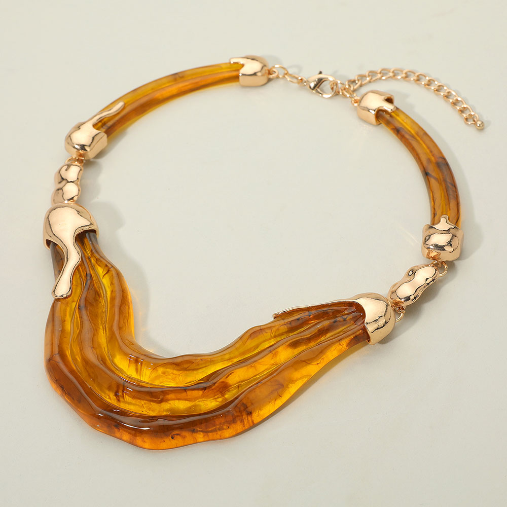 Bold Abstract Wave Resin Accent Statement Necklace