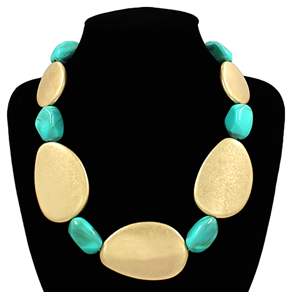 Bold Brushed Metal Plate Marbled Pebble Beaded Statement Necklace Bold Brushed Metal Plate Marbled Pebble Beaded Statement Necklace Bold Brushed Metal Plate Marbled Pebble Beaded Statement Necklace