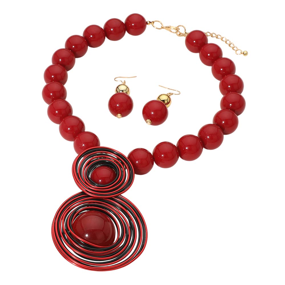 • This statement beaded necklace and earring set delivers bold, coordinated style with a striking pendant design and matching drop earrings. Created to elevate everyday outfits or complete dressy looks, this set is ideal for gifting, boutique collections, and trend-driven displays. A versatile accessory that adds polished impact to any jewelry assortment.