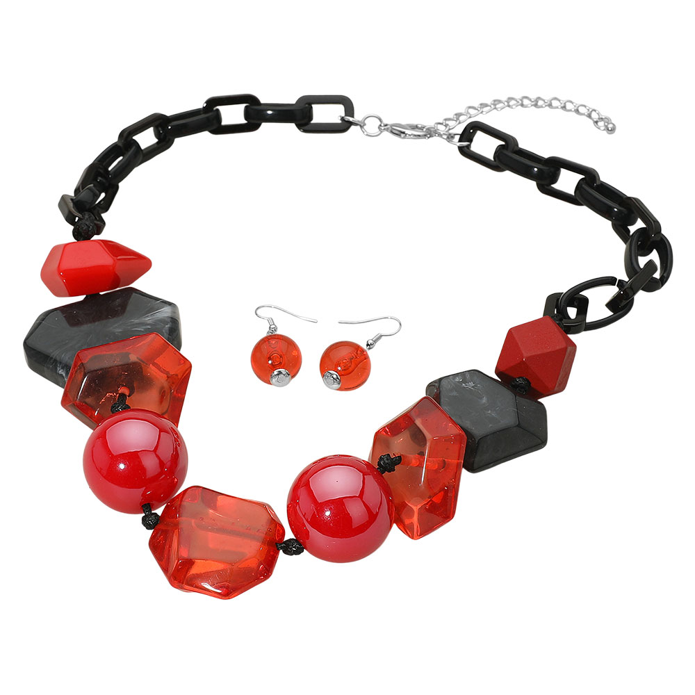 • Create bold impact with this geometric bead necklace and matching earring set designed for statement styling. Perfect for elevating everyday looks or completing evening outfits, it offers coordinated elegance and modern flair that makes a thoughtful gift or standout personal accessory.